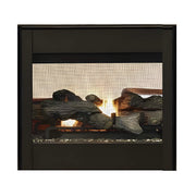 This fireplace is both beautiful and efficient, with an energy-saving electronic ignition and ceramic fiber log set that mimics the charm of a wood-burning fire. Optional blower and ceramic fiber liner add extra functionality and sophistication. Durable powder coat finish ensures long-lasting beauty.