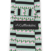 Southwest style never goes out of fashion. Bold stripes of black, pink, and sage green form the background to a series of miniature cactus plants for a fun 100% cotton novelty tie that's perfect for any warm weather formal event. Pair with our coordinating cufflinks or lapel pin and you'll be crowned the Cactus King.