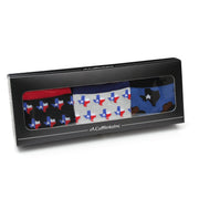 Go big or go home. The perfect gift set for the Texan man who has everything, this set of three sock pairs is sure to make him smile. Contains three pairs: black with Lone Star State flags, gray with Lone Star State flags, and midnight blue with novelty cowboy hats. Now the world will know just how much Texans love Texas. Our Eco-Friendly Fiber has breathable properties that keep your feet dry and snug all day long.
