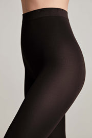 Opaque TRIUMF tights with a velvety double-layered structure are made from durable microfiber yarns using 3D technology. They fit perfectly, retain warmth, and are ideal for everyday wear in cold weather. Thanks to LYCRA® fibers, they are durable, snag-resistant, and feel like a second skin.
