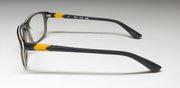 The frame is sold with demo lenses that have a logo stamped on them in ink. The frame can be fitted with real lenses at most optical stores. This frame provides comfortable fit and flatters a variety of face shapes. These eyeglasses are crafted from high quality, durable premium acetate plastic. Original case is included. The glasses are made in China.