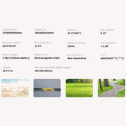 - Navigate with electromagnetic brakes, easy speed adjustments (1.62 - 3.75 mph), and reverse gear options.