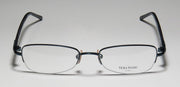 The frame is sold with demo lenses that have a logo stamped on them in ink. The frame can be fitted with real lenses at most optical stores. This frame provides comfortable fit and flatters a variety of face shapes. These eyeglasses are made of metal and high quality, durable acetate plastic. This frame is from the exclusive Luxe collection. This is a flagship line of eyewear manufactured by Vera Wang from highest quality materials. Original case is included.