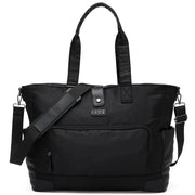 - Voyage Weekender Bag (25L): Crafted from water-resistant twill polyester with vegan leather accents; spacious interior, 14" laptop sleeve, mesh water bottle holder, and multiple pockets. Includes comfortable carrying handles, removable padded shoulder strap, and trolley sleeve. Dimensions: 20" x 7" x 14.5"; Weight: 1.8 lbs.