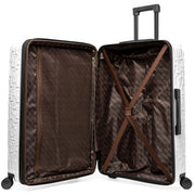 - Materials: Polycarbonate and ABS shell, TPU handles, PP wheels, iron trolley bar, ABS trolley handle, polyester lining, metal zipper, and zipper puller.