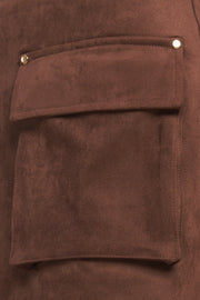 A faux suede skort featuring front pockets and back zipper closure