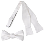 A classic self-tie bow tie is a formal wardrobe staple. Perfect for any classy or special event, this white bow tie is fully adjustable to fit most neck sizes comfortably; making you the classiest man in the room. This bow tie will maintain its shape and hold a perfect knot thanks to being crafted with durable yet soft 100% Silk.