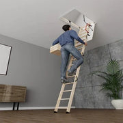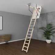 - Wooden ladder with a maximum ceiling height of 130 inches